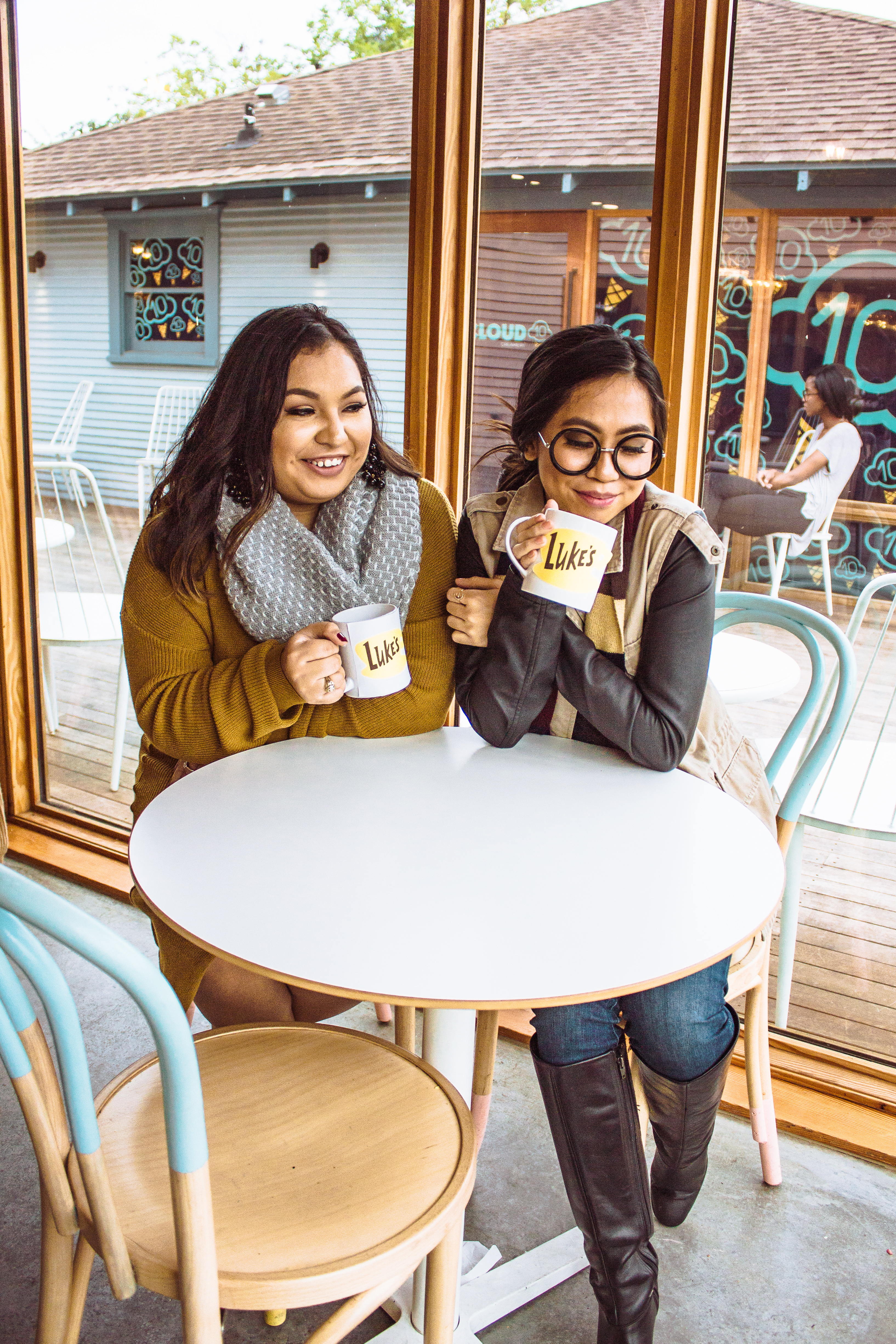 Honestly, I believe the number one thing that helps tie this costume together is our DIY Luke’s coffee mug. If you want to create it last minute, you can simply print out the Luke’s logo, cut it out, and tape it to a plain white coffee mug. If you want to go the extra mile, I’ve also found some Etsy mugs available online that are Gilmore Girl related: