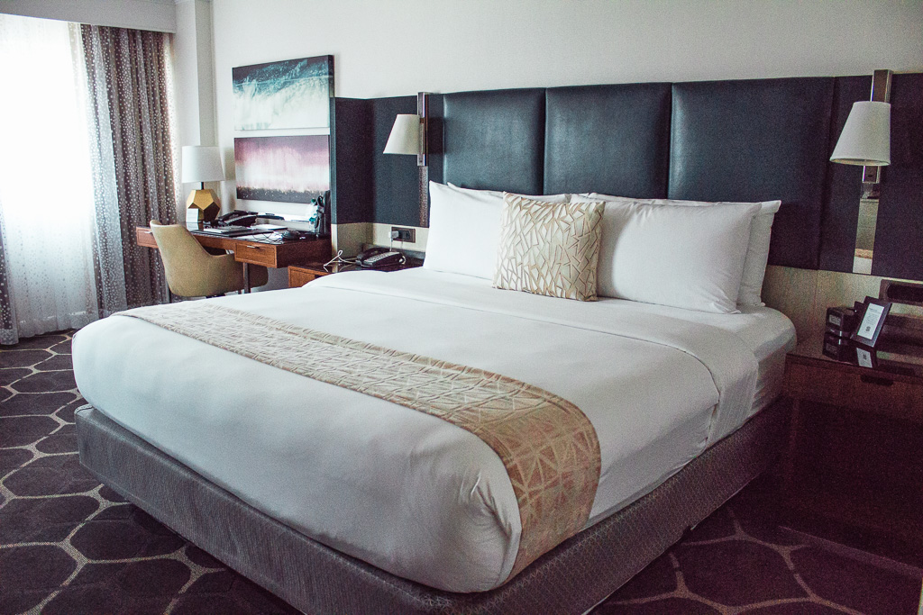 Words to describe my initial impression of the lobby area are accommodating, chic, and contemporary in design. Nothing surprised me as far as the hotel’s color theme and interior design layout, but the overall look of it was truly the epitome of what a 5 star hotel should look like. The staff was helpful with checking me in efficiently and they were very courteous to escort me to my floor. I was on my way to my hotel room!