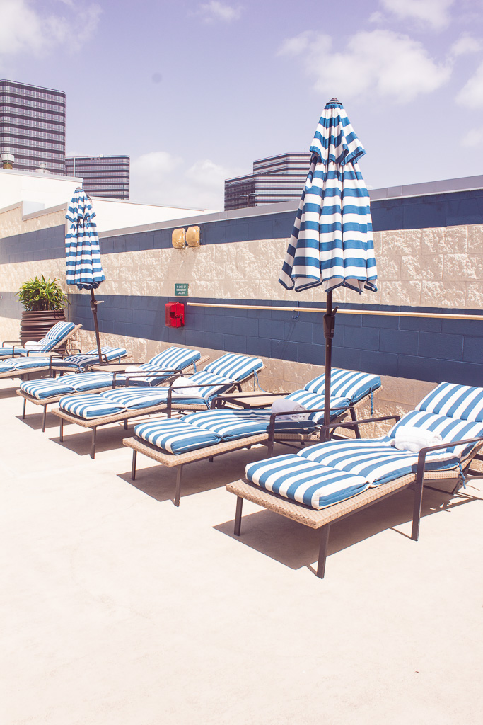 I was excited to find the swimming area outdoors; the nautical striped prints looked so colorful and fun! With beautiful weather, I can see why the pool and jacuzzi is a huge hit! While I was walking around, I immediately noticed the rooftop view of the city. This area is perfect for families and social gatherings. While the pool size is standard, I highly enjoyed soaking in the jacuzzi before I headed out to the lobby.